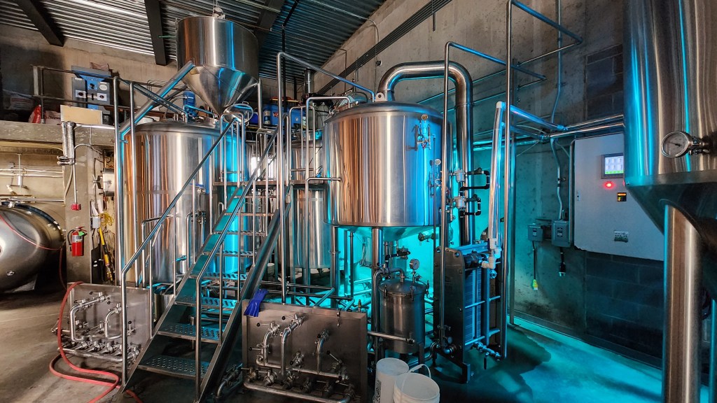 It took us a few minutes to find the entrance of the GHBC, but when we did…we were so glad that we came. The first thing we noticed when we went inside was a big refrigerator door with a giant logo of the company on it. The tasting room and brew house is a relatively large room…the kettles and tanks back lit with relaxing blue lights. Their warehouse is huge. The bar and the wall behind it, was made from beautifully hand-crafted wood. There was a long table in the center of the tasting room area that was also made from magnificent wood craftsmanship. Ghost Hawk is very pet and family friendly.