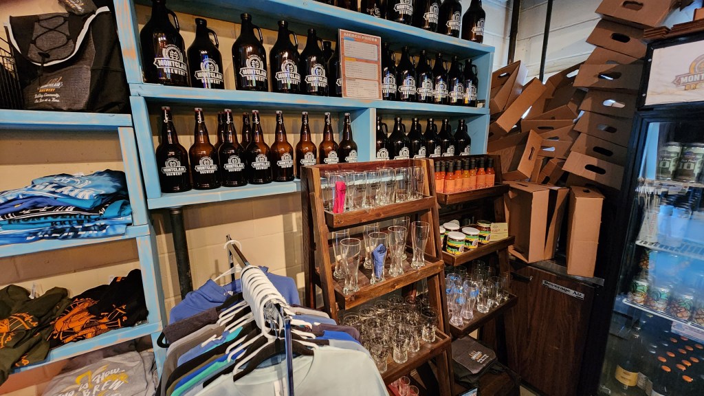 The Montclair has both front and backyard patios. The backyard patio is spacious and is complete with both fire pits and heaters for those cooler nights. The comfortable and cozy interior tasting room and bar area has a rustic/vintage feel with an interesting large mural on one of the side walls. The bar is made up of a beautiful shellacked covered wood with ample seating around it. The brewery is both child and pet friendly…with water dishes available for the furry little friends.