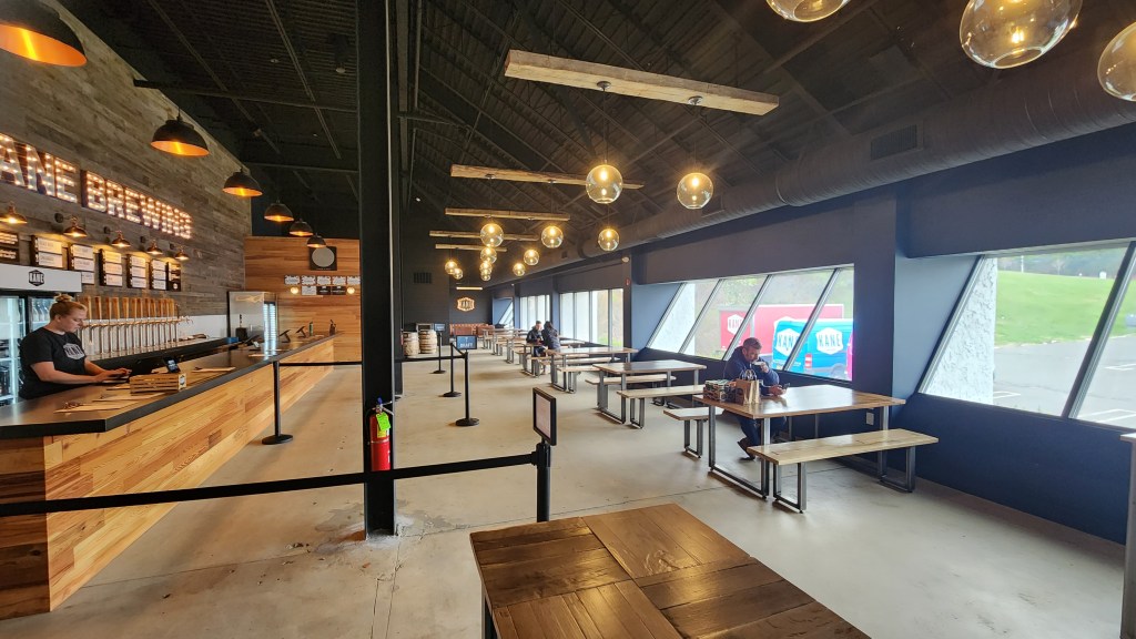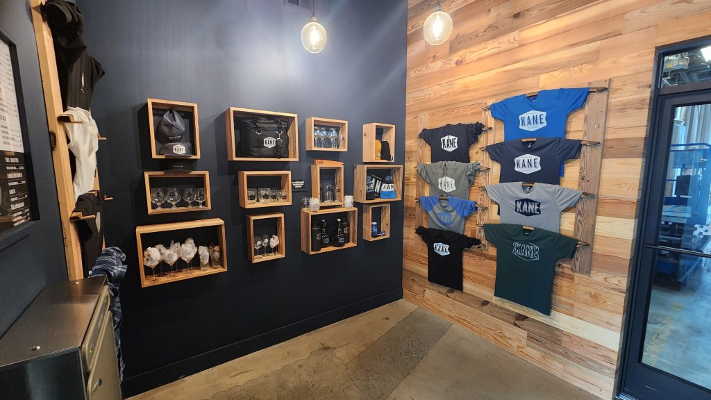 In 2023, Kane opened a brand new tasting/tap room. We found the room to be very spacious with plenty of seating. There is a small, cozy lounge area with nice couches where you can sit back, relax, and unwind. The decor has a semi rustic/woodsy-type feel to it. For the warmer months, there is also an outside area where you can go to drink a fabulous brew and feel the cool ocean breezes flow through your hair. There is plenty of cool merchandise for sale. There is a wide variety of glasses (of all sizes), growlers, shirts, hoodies, hats, and other gear available. The environment is very relaxed, easy going, and amiable…a terrific place to gather with your family and friends! Unfortunately, we visited Kane Brewery early in the day…as soon as it opened…other customers have commented that it is packed on weekends, etc.