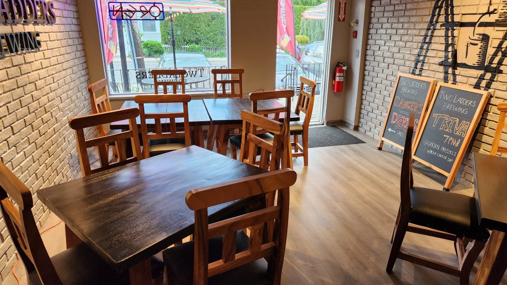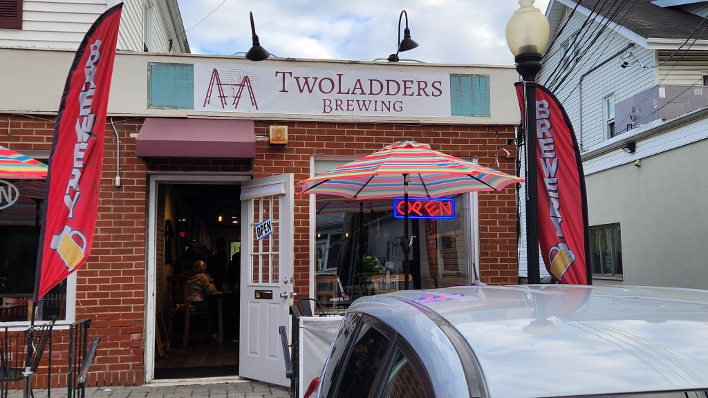 Located in the small New York town of West Nyack, is the Two Ladders Brewing Company. This small hidden gem blends in with the surrounding neighborhood and has a nice, positive, and pleasant atmosphere as you enter the establishment. The brewery offers patios both in the front and back…a great place to meet your friends!