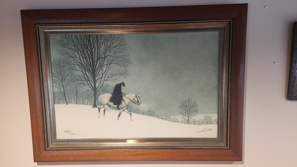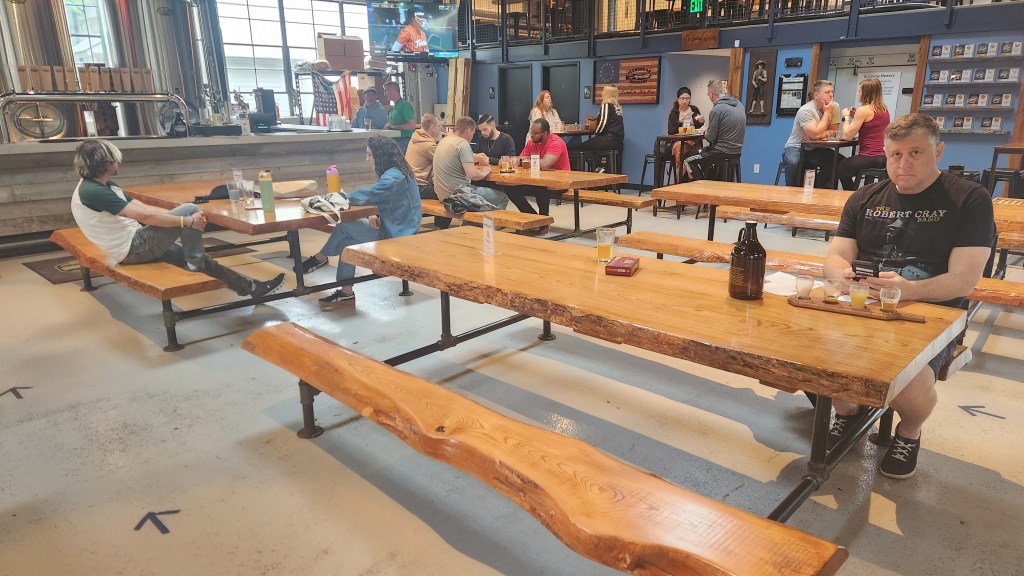 Upon entering the spacious tasting room, you will notice the big fermentation, brite tanks and vessels that are used to make the luscious beers. Everything you see is made from Morristown including the tables and benches…they truly are beautiful works of art! The bar is made up of stone with a wooden top. The brewery is so very good at maintaining the history of Morristown while keeping the tradition of the town and the Revolutionary War. There is an upstairs area, overlooking the main floor tasting room, called, “The General’s Quarters” that is a cozy little area complete with pictures of George Washington including one that is 1 of only 1000 ever made of George Washington on a white horse (see attached picture). The brewery also works in concert with the 2nd Regiment Helms Company who are Revolutionary War reenactors.