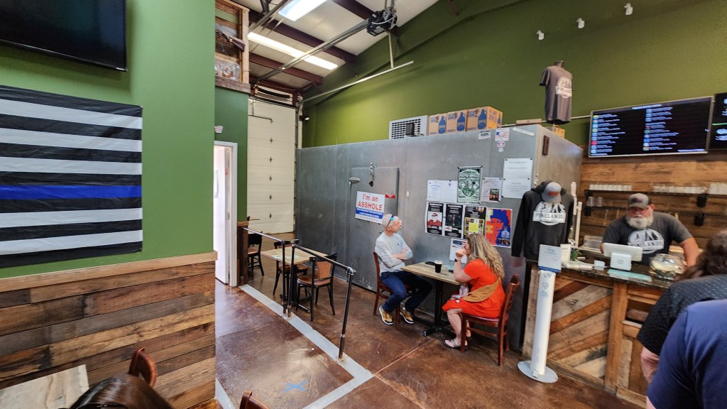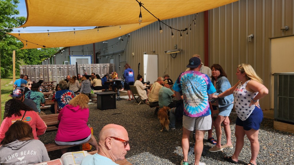 Founded in 2013, Pinelands is very pet friendly and offers a very nice outside patio/entertainment area complete with a canopy, picnic and high top tables, a gas fire pit, and even a game of Corn Hole. The taproom is a small area with limited seating. We were surprised to not only find the room a little small but also to see that there was only one person working the taps. Unfortunately, we didn’t find the bartender to be an overly friendly fellow. He was nice but also curt and succinct…but…to be fair…he was VERY busy and there was a considerable waiting line. Thus, our assessment of this part of our review is really incomplete. We need to go back and visit them again at another time when it isn’t so busy.