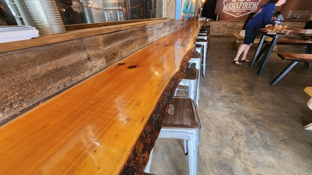 The bartenders are knowledgeable, friendly, and happy to help. There are many, many drinks of all kinds that are available…25 of them on tap! ManaFirkin offers fresh, wholesome beer with all kinds of flavors that you will want to try. There are hoppy and floral tasting IPA’s of all kinds that you will enjoy. There are lighter drinks like seltzers and ales such as the “Sea Gull Brawl” white ale or the seltzer, “Firkin Bubbly.” Delicious and flavorsome drinks such as the “Trippin’ Monkey Belgian Tripel” or the “Playing Pretend” oatmeal stout, are just a few of the tremendous variety of beverages that can be purchased. Saisons, Porters, Stouts, Lagers…the list goes on and on…the good news…the beers are constantly changing, revolving, and rotating. No matter what time of year or season, there will ALWAYS be a drink that will satisfy any beer lover’s palate!