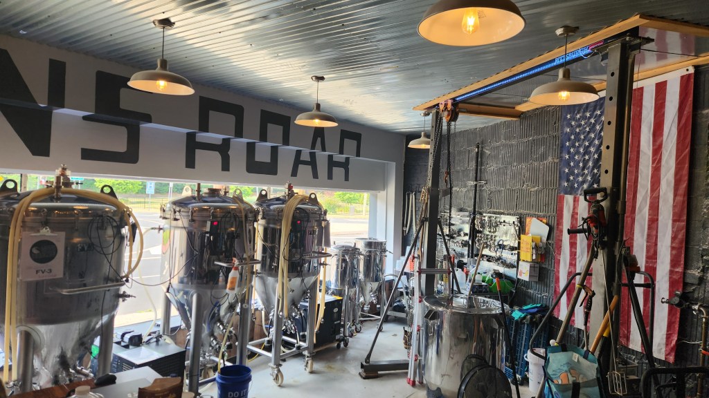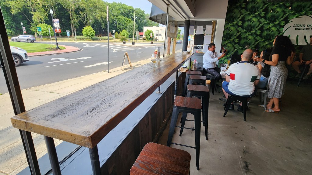 We found the Lions Roar Brewing Company in Westfield, NJ, to be a nice, cozy little brewery that we think you may like. Located right on the Westfield traffic circle (where there is a beautiful memorial park), the atmosphere was neighborly, the covered outdoor seating area was fun and spacious, while the indoor tasting room was welcoming and quaint with a nice natural decor.