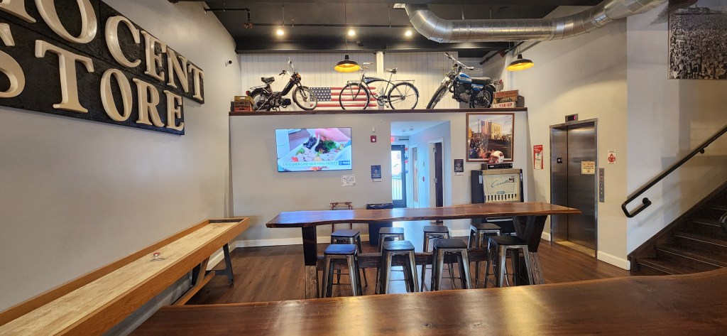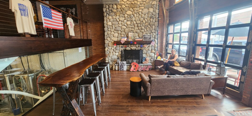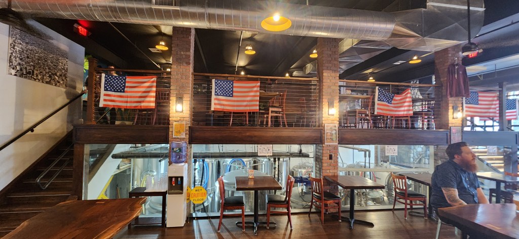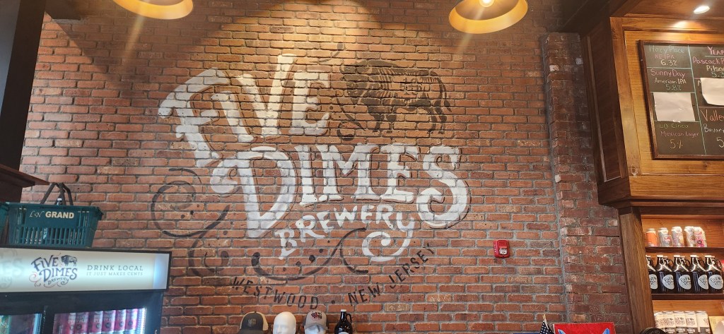 In the small town of Westwood, in northern New Jersey, known for its many shops and eateries, you will find one of the nicest breweries, the spectacular “Five Dimes Brewery.” (On the site.of the old L.N. 5 & 10 Cent Store). Located right on the main thoroughfare, Westwood Avenue, you will enjoy its spacious tasting rooms and three additional levels and spaces to spend time with your friends and family. They have a rooftop area that overlooks the street and offers not only a great westerly view in which you can see some awesome sunsets, but also overlooks the main shopping area of Westwood. There is an adjoining room complete with a fireplace, bar, and seating area. The tasting room is a large area that has beautifully carved wooden tables/bar tops, a mini tabletop shuffleboard table, games, and an awesome fireplace! There is an upper balcony level complete with beautiful sofas, lounge chairs, and tables and chairs. There is memorabilia scattered around the establishment that gives you the feel of the building’s previous business…an old “Five and Ten” store…pretty cool!