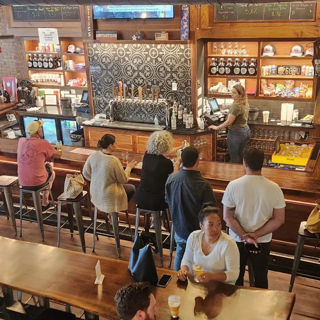 The beer is fresh and savory. Check out their signature IPA’s, the “Sunny Day” and the NEIPA, the “Hazy Place”, and their fabulous “Nickel Stout”. There are many flavors of seltzers (lemon-lime, ginger, watermelon, blackberry, raspberry, and passion fruit) as well as other wholesome kinds of ales, a Bavarian wheat beer, lagers, and sours, and a plethora of other drinks! You will find that the beertenders, customers, and the managers (Matt, the social media manager is awesome and a great person to speak with).