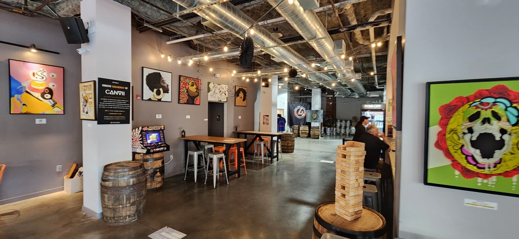 The spacious tasting room has plenty of seating and entertainment waiting for your enjoyment, such as darts, a giant Jenga game, and a video game console with lots of games. They have a wide assortment of sours, IPA’s, lagers, pilsners, and stouts. Check out their signature drinks such as the “Citrus City,” a tasty, hoppy Pale Ale, the “Wha Gwon,” American IPA, or the American Lager, “The Keg Stand’. As with most breweries, the brewmasters are continually creating new drinks and tastes for everyone.