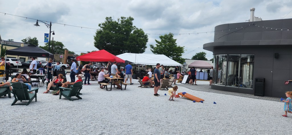 There is great news for all of you New Jersey craft beer lovers, there is a new, hip, and very chic brewery in the Garden State..the Diamond Spring Brewing Company in Denville. The brewery offers a spacious outdoor seating area (which reminded us of the beach) complete with picnic tables, a big party/Oktoberfest-type tent, white pebble stone, a giant Jenga game, and corn hole.