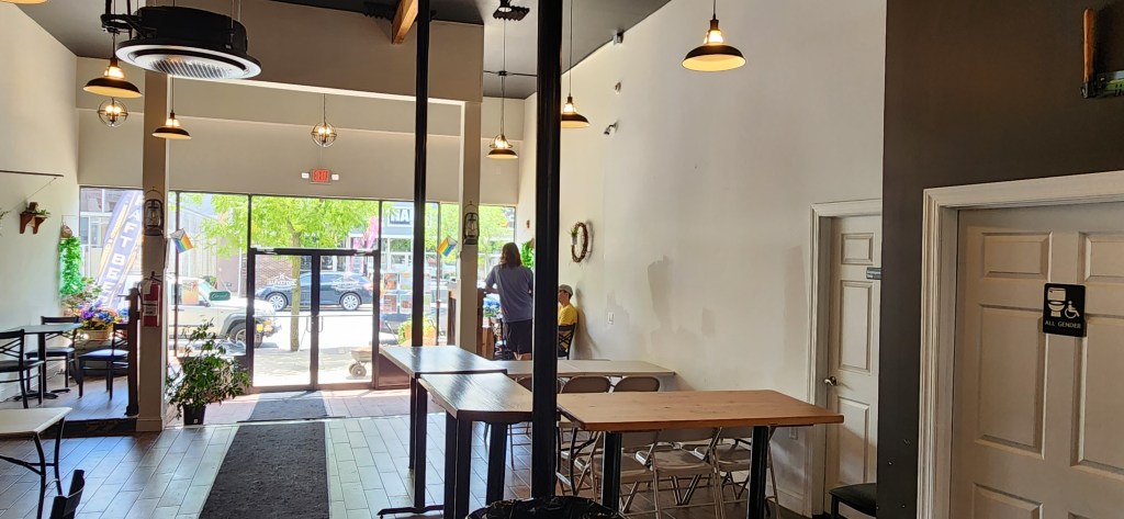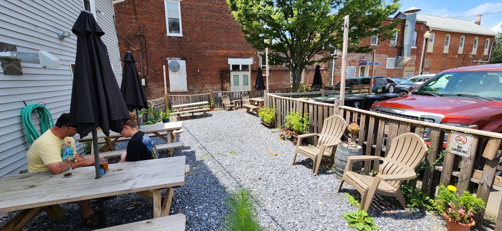 Looking for a hip, chic, and relaxing location to enjoy a nice, cold brew? Well, look no further than the Buttville Brewing Company in Washington, New Jersey! We found the brewery to be delightful and refreshing. The indoor tasting room has a rustic/farm-type feel to it with all kinds of antiques scattered around to add to the decor’s appeal. Though the room is relatively small, there are plenty of tables and chairs for everyone. There are two small window table areas that are nifty little nooks that you will enjoy. There is a charming outdoor beer garden in the back that is beautifully decorated.There was a strong scent of hops permeating throughout the room with the brewery room located in the back. The bartender, Glenn, was extremely happy, cheerful, and enthusiastic and was more than happy to serve and speak with us. The establishment is child and family friendly.