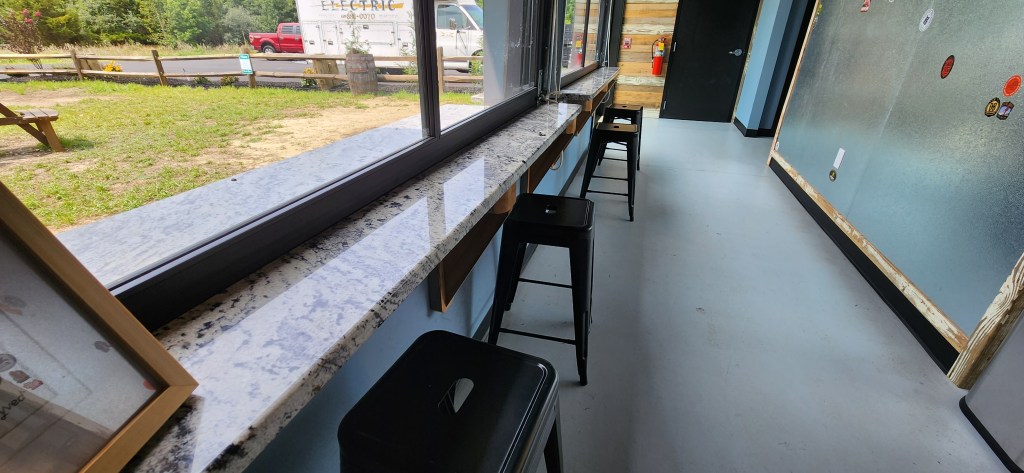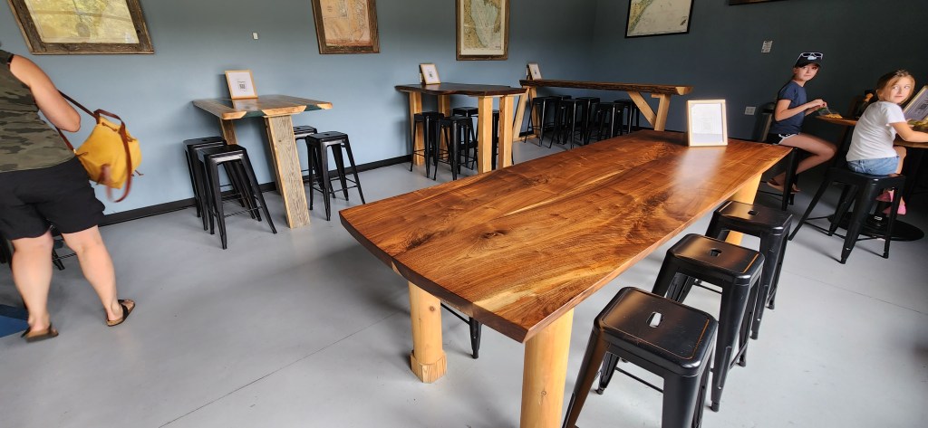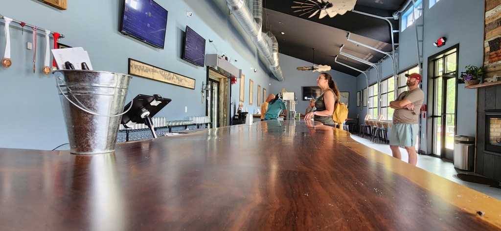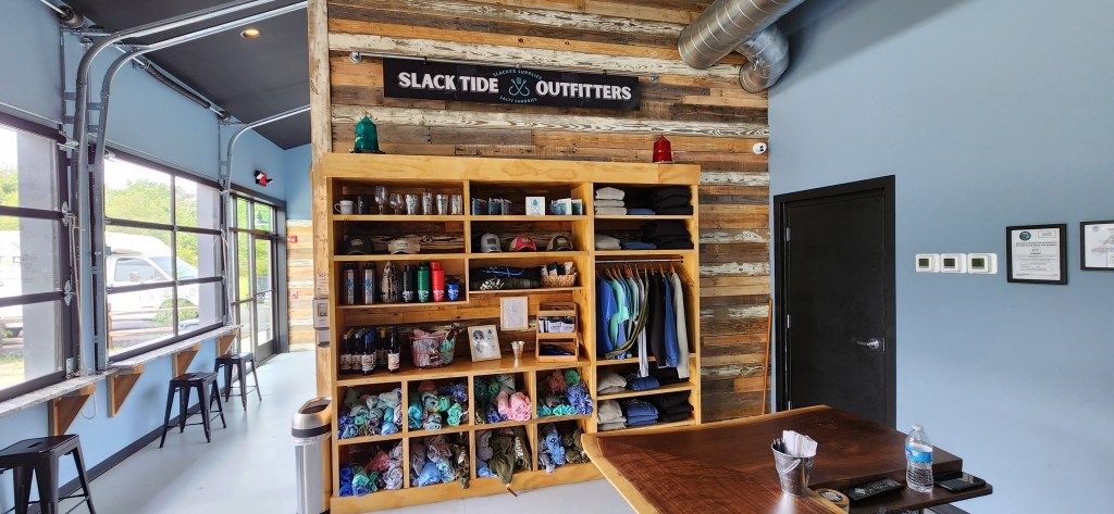 The tasting room has a beachy decor. The tables are made from magnificently crafted real wood with a type of polymer infused within. There are several maps of the New Jersey coastline adorning the walls. There are also granite window counters, roomy seating, and a nice bar to sit back, relax, and relish some good beer. In December of 2021, Slack Tide canned their ONE MILLIONTH CAN!!