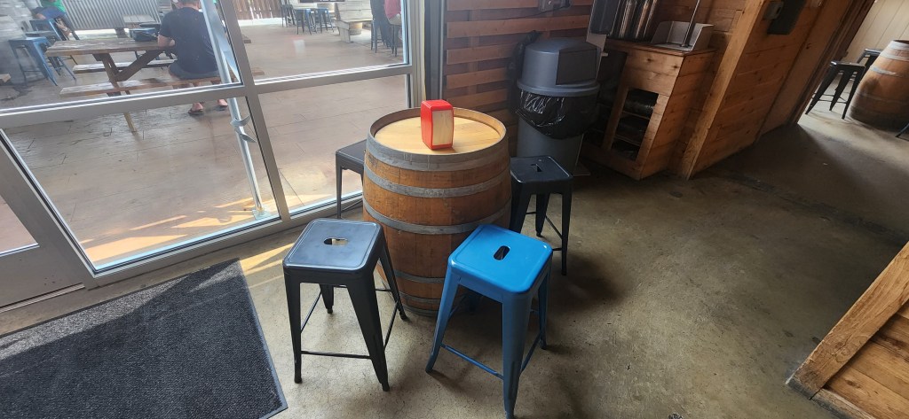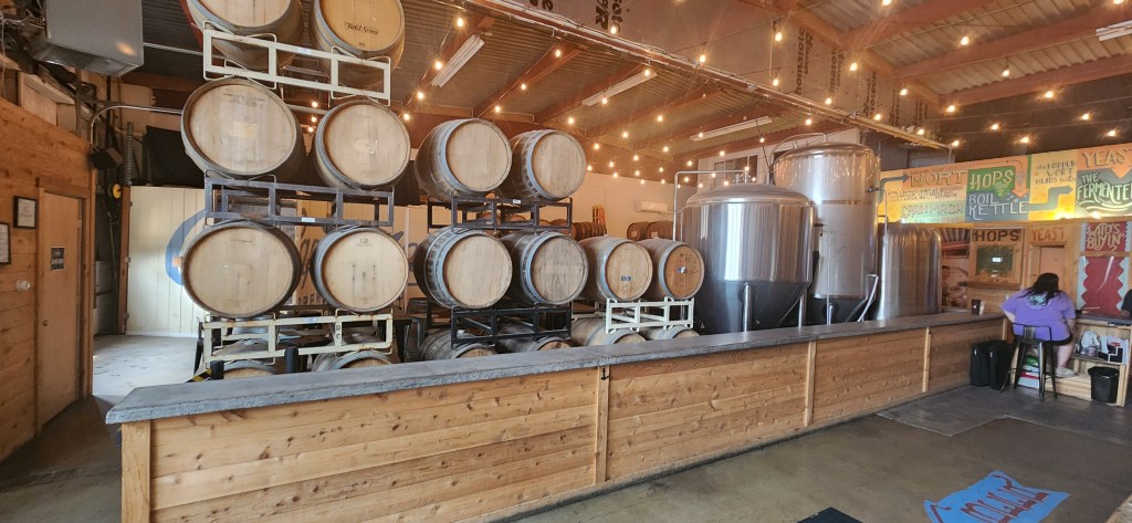 The brewery itself is located in the Cape May Airport complex and there is a surfeit of seating areas located around the complex. There is the beautiful and relaxing bar room, the indoor “Sour Room” which has actively fermenting barrels surrounding it, a spacious and comfortable outdoor, tented patio, and last but not least, the seasonal but magnificent outdoor Brewtanical Garden…a GREAT space to pull up a chair, enjoy the cool ocean breezes, and revel in a delightful drink while listening to live music performances (when available). Pets are only allowed in the outdoor spaces. The “Brewtique ” is the brewery’s gift shop which offers all kinds of merchandise and goodies to take home!