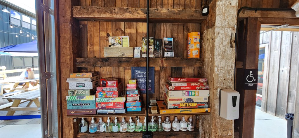 There is a nice comfortable outdoor patio area located both in the front and back of the brewery as well and there are many games to be enjoyed!