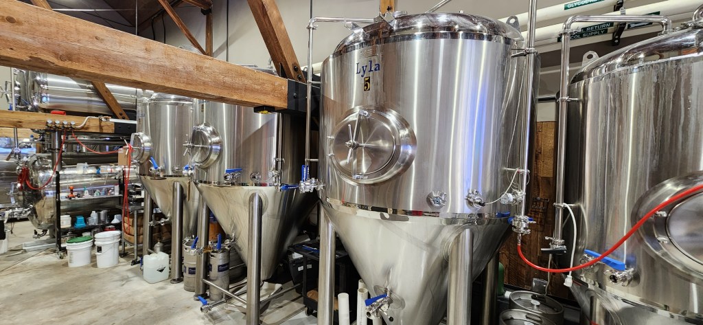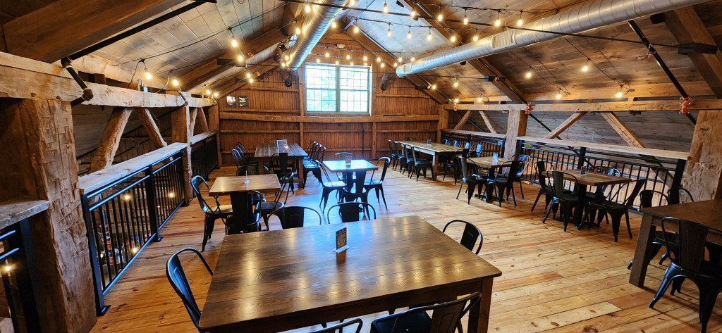 Many of their drinks are named after certain aspects of the movie. We found all the bartenders, Sam, Eva, and Connor, to be so friendly, cheerful, and happy to serve us..great people! There is a wide variety of really great tasting ales, IPA’s, Pilsners, stouts, Hefeweizen, slushies, ambers, and seltzers made from their 18 kettle system. You need to try them all, you won’t be disappointed. The “Hill Street Honey” won a silver award out of 6000 blonde ales while using local hops. A couple of their flagship brews are the “Scarlet Red” red amber and the yummy, “Fred” hazy IPA. Their tasting room is a huge, spacious room as well as the cozy and rustic “hay loft” located just above the taproom floor.