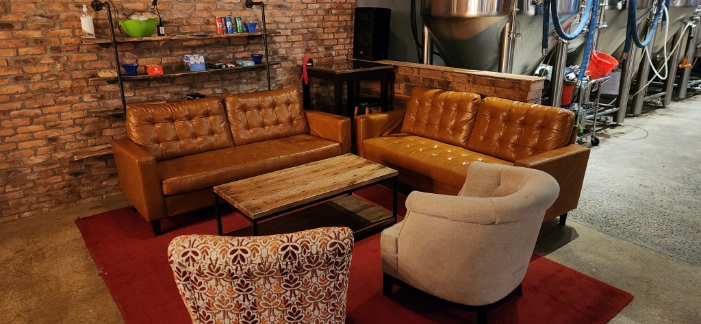 We found the brewery to be a very clean, pleasant, and inviting place to visit to fulfill your desire for great tasting beer. The decor has a country feel to it with a high wooden ceiling, nice thick stone tables and stylish red chairs. There is a comfortable little lounge area complete with games and luxurious couches and lounge chairs. The brewery is family friendly and is a terrific place to bring your family and friends to enjoy a beer, a variety of food from surrounding areas, and good company.