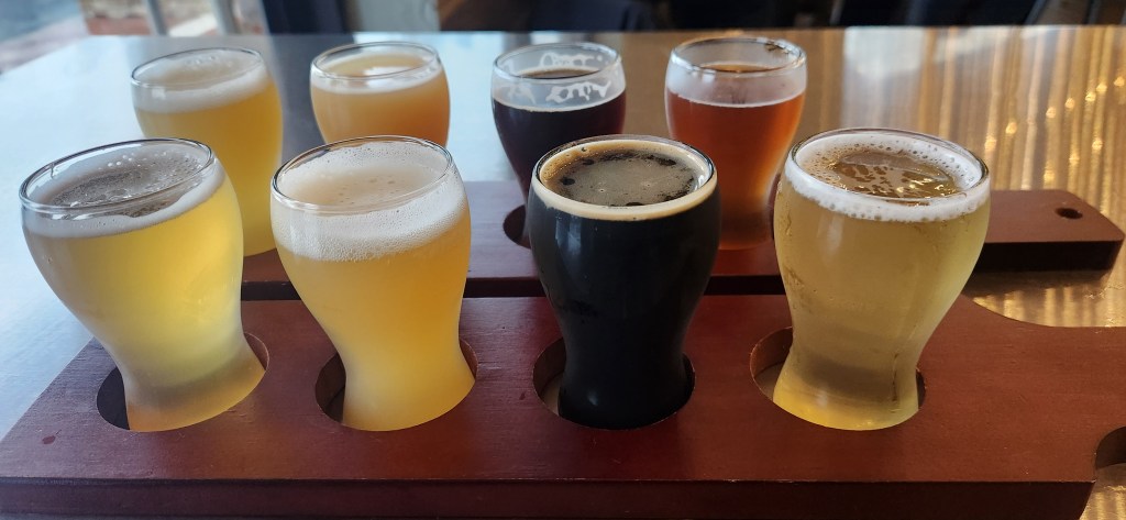 We found the beertender to be a very pleasant and happy young man, despite the fact that he was working alone. He certainly made our visit there pleasant and enjoyable. The brewery offers hard seltzers, along with a pumpernickel rye porter, a coffee or vanilla stout, a Hefeweizen, a farmhouse saison, an American lager, and both a hazy IPA and DIPA. As with many other breweries, new beers are always being created and produced. We found the drinks to be savory, refreshing, and wholesome.