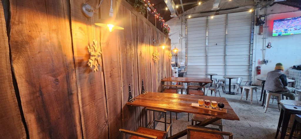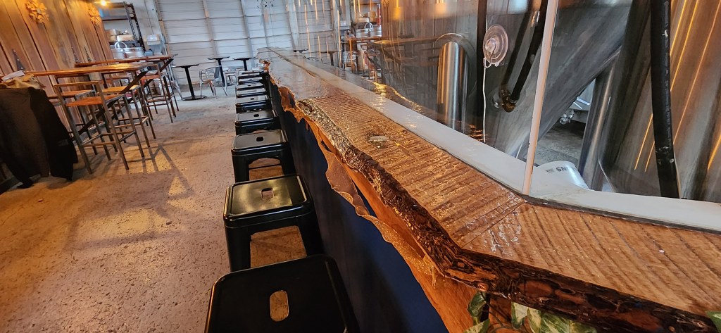 Owned by three brothers and their dad, the brewery radiates a familial warmth that makes every visit feel like reconnecting with old friends. The atmosphere is industrial-chic with a cozy twist, offering a harmonious blend of practicality and charm. A highlight of the tasting room is its handcrafted wooden table and bench, enhanced with polished, shellacked wood for a touch of sophistication. Guests can also enjoy a unique perspective from the sidebar, which overlooks the brewing kettles, adding an engaging, behind-the-scenes element to the experience.