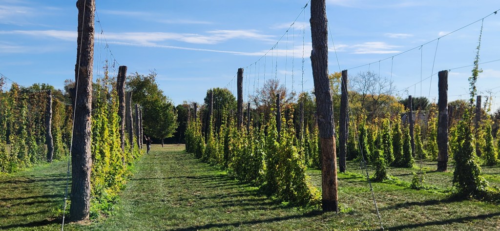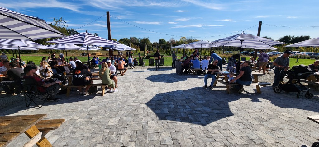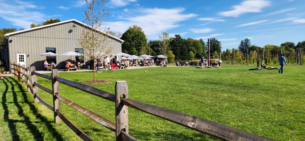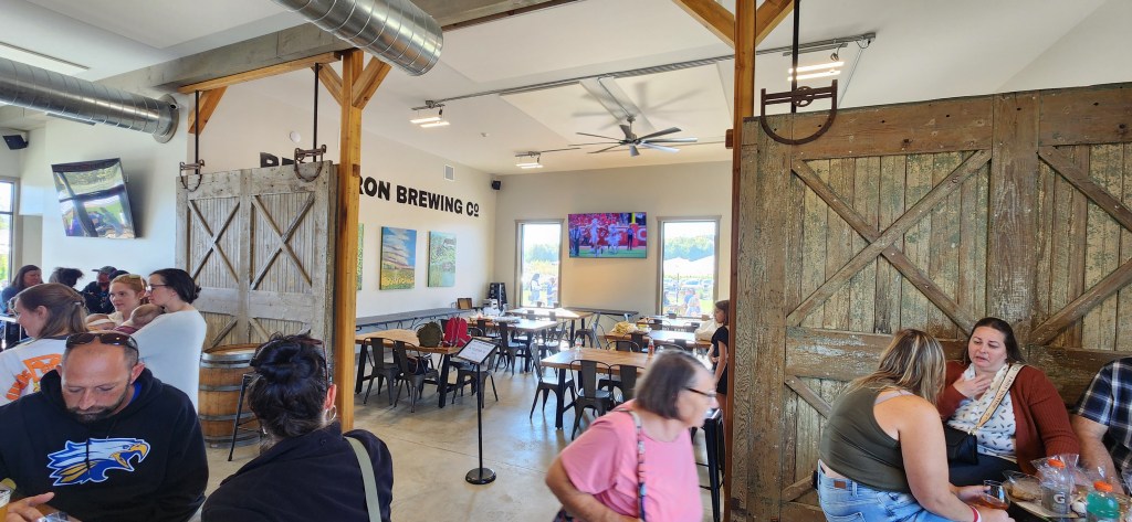 Bent Iron’s location is as remarkable as its story. The brewery boasts a spacious, stylish tasting room anchored by a beautifully crafted bar that immediately sets the tone for a memorable visit. Complementing this indoor space is a large outdoor seating area, complete with a vibrant zinnia garden that adds a splash of color and charm. Adjacent to the property, guests can enjoy a leisurely stroll through the brewery’s own hops farm, which emphasizes their dedication to sourcing and quality. For entertainment, the venue features cornhole games and a dedicated band wagon for live music, creating a welcoming space for friends, families, and fellow beer lovers.