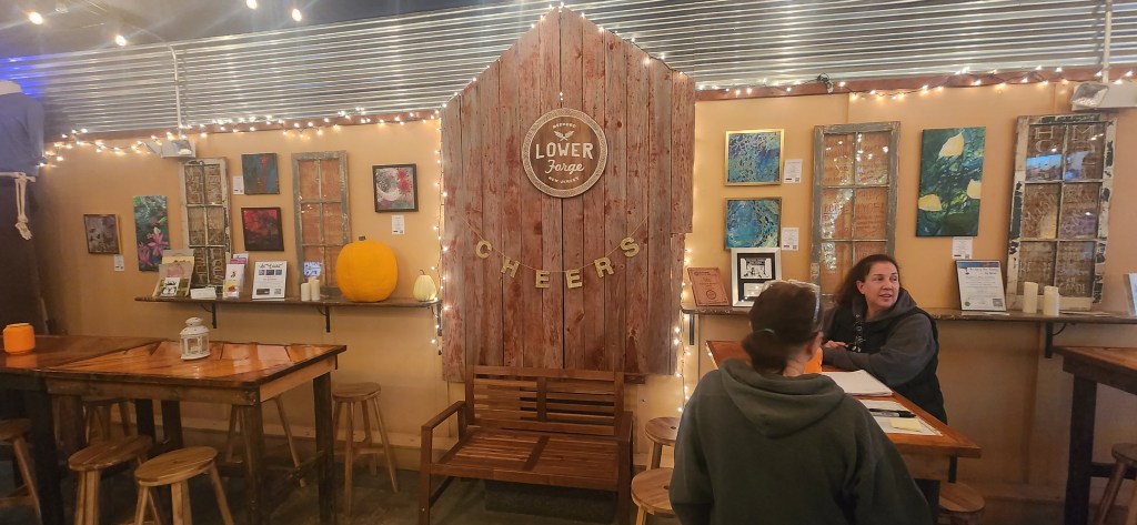 Family owned and operated, the team behind Lower Forge set out with a clear mission: to create a space that feels just as comfortable as your own living room. That vision comes through in every detail, from the friendly service to the cozy layout, and the creative vision of local veteran artist Joy Keldson, whose work adorns the walls and adds to the brewery’s welcoming vibe. Her Elm Gallery pieces connect the brewery to the broader Medford arts scene, making each visit feel like a little cultural outing.
