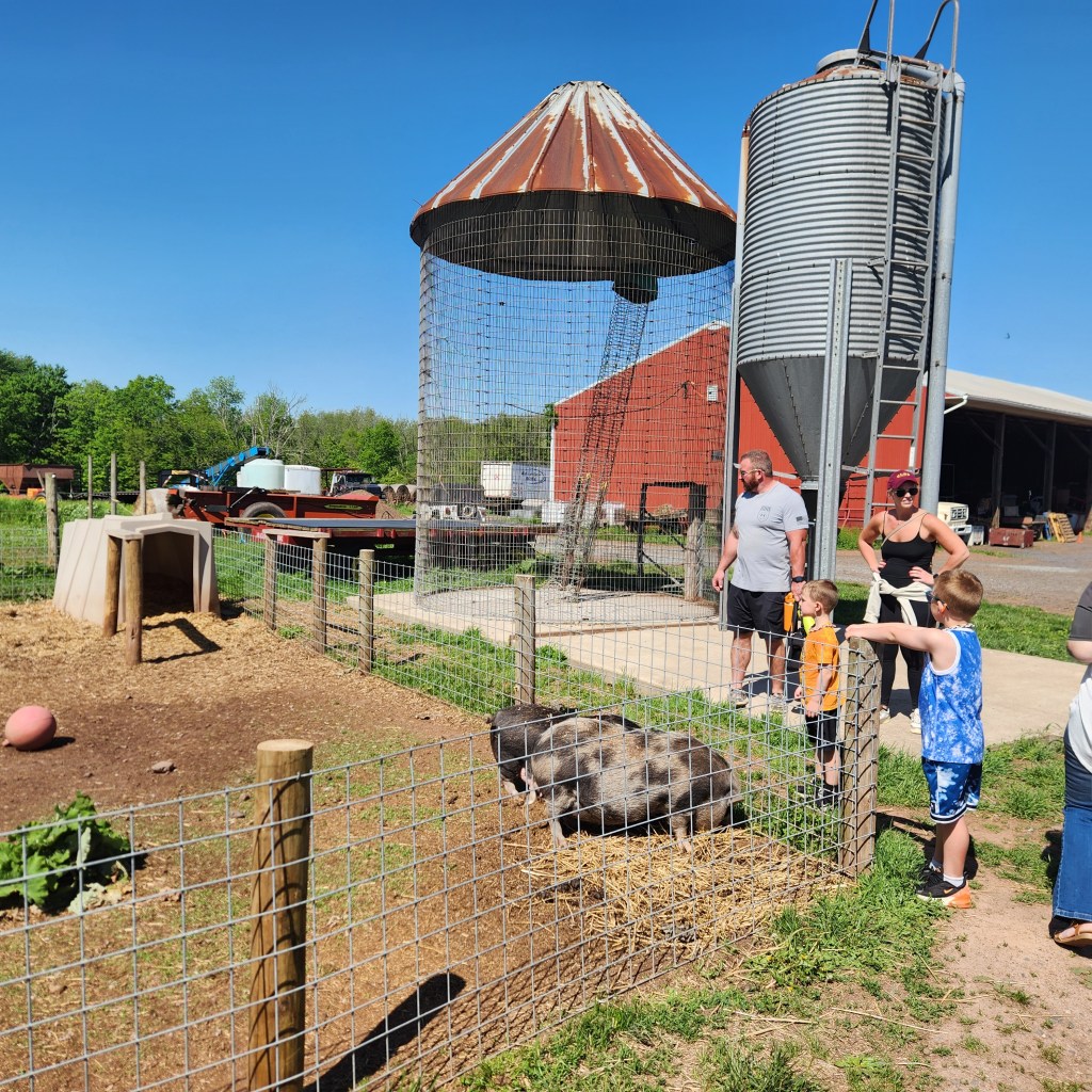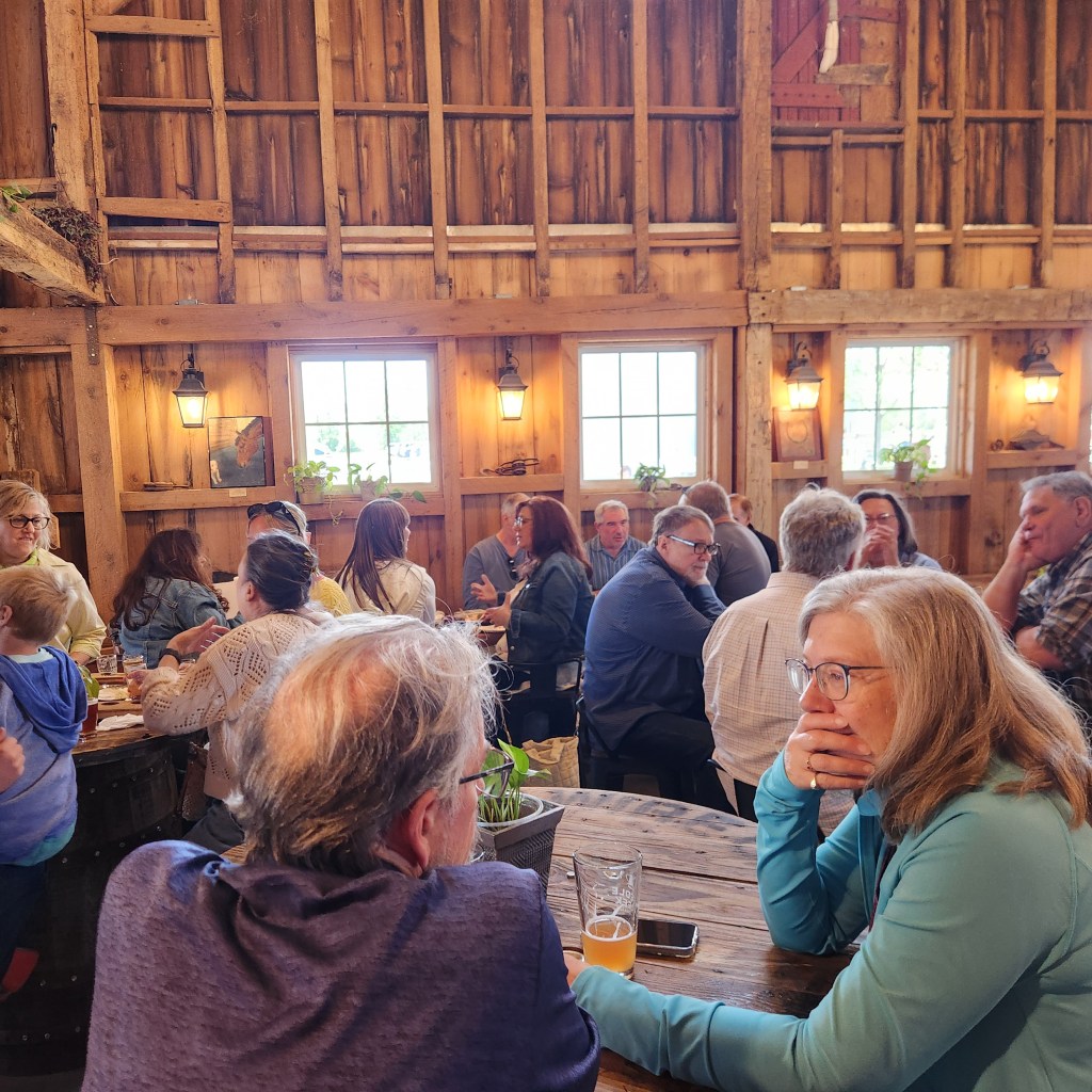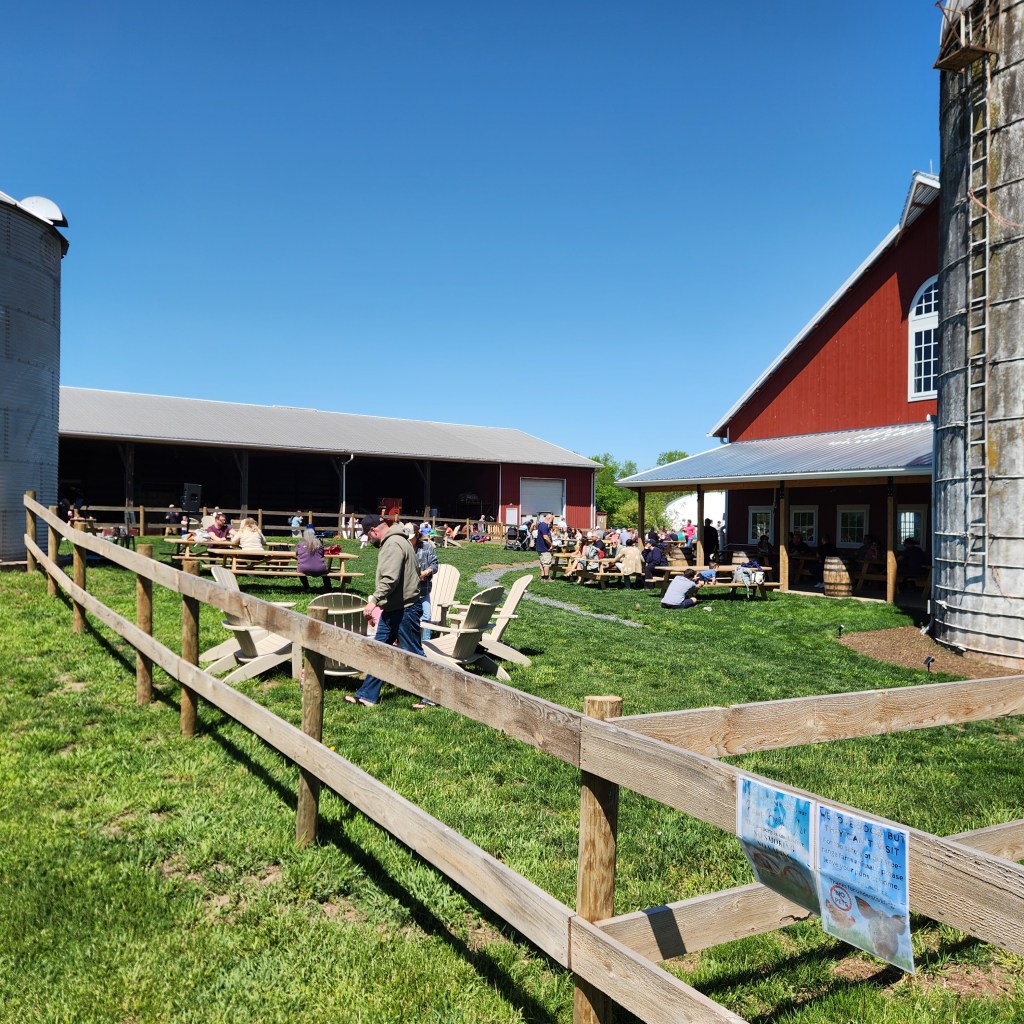 Outdoors, the space really shines. There’s an expansive beer garden with plenty of picnic tables, a family area with a gaga pit, and even a small pond complete with a miniature bridge. Live music fills the air on weekends, and kids are free to explore while parents sip on pints. Animals roam nearby, including cows and other farm favorites that guests can pet, making it every bit a working farm as well as a brewery.